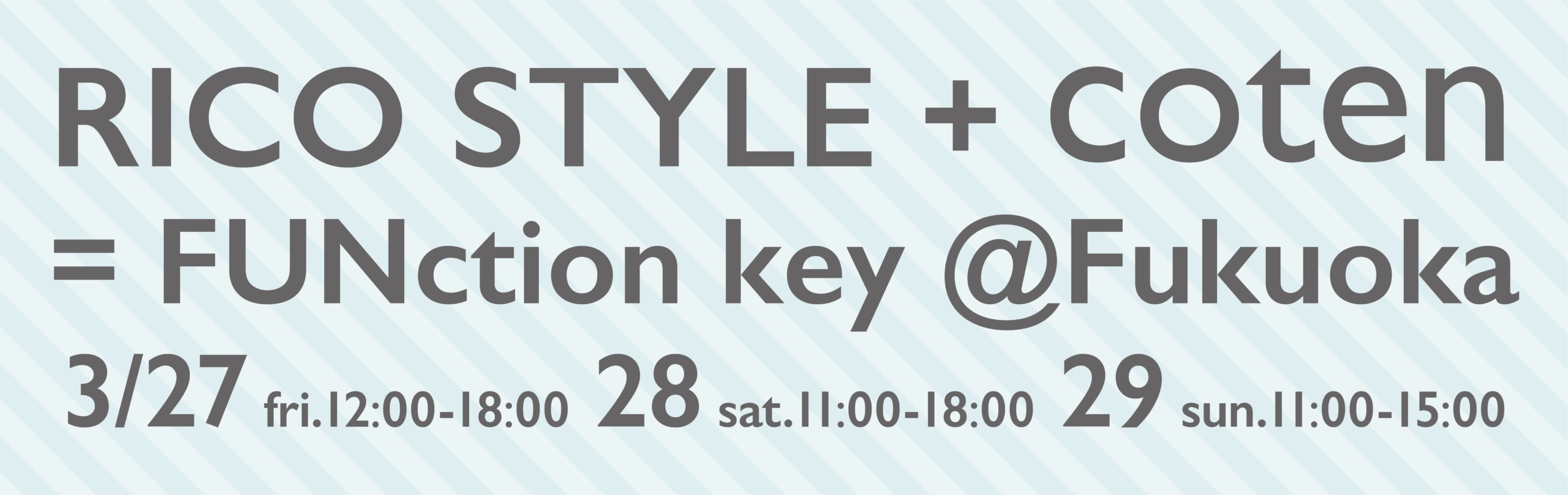 2026年2月7日 / 最終更新日時 : 2026年2月3日 tanaeri その他 「RICO STYLE + coten = FUNction key @Fukuoka」のご案内 「RICO STYLE + coten = FUNction key @Fukuoka」+ オハラリエコのお気に入りだった+ cotenリユース事業部+ 多奈ゑりきものマーケット 【日時】2026年3月27日(金)〜29 […]